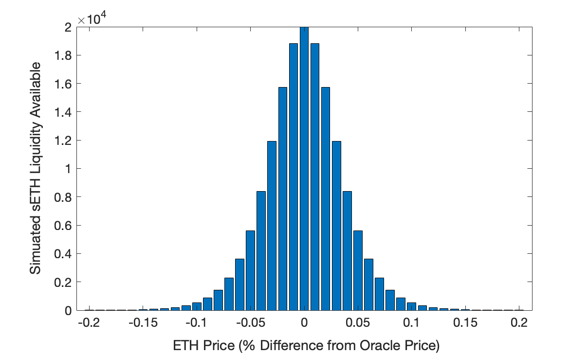 evaluated from \(n\) to \(n + s\), where \(O\) is the current oracle price. In practice, liquidity should be parameterized to mimic global liquidity available in the underlying market, less some margin of safety (e.g. 20%). For instance, if there is $10M of +2% order book depth across all markets for a given synth, Synthetix would quote a 1.2% premium to the oracle price for a $10M buy.